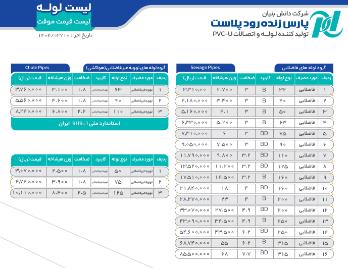لوله و اتصالات پولیکا در سایز بندی 63 الی 400 میلیمتر جهت مصارف ساختمانی و صنعتی مورد استفاده قرار میگیرد